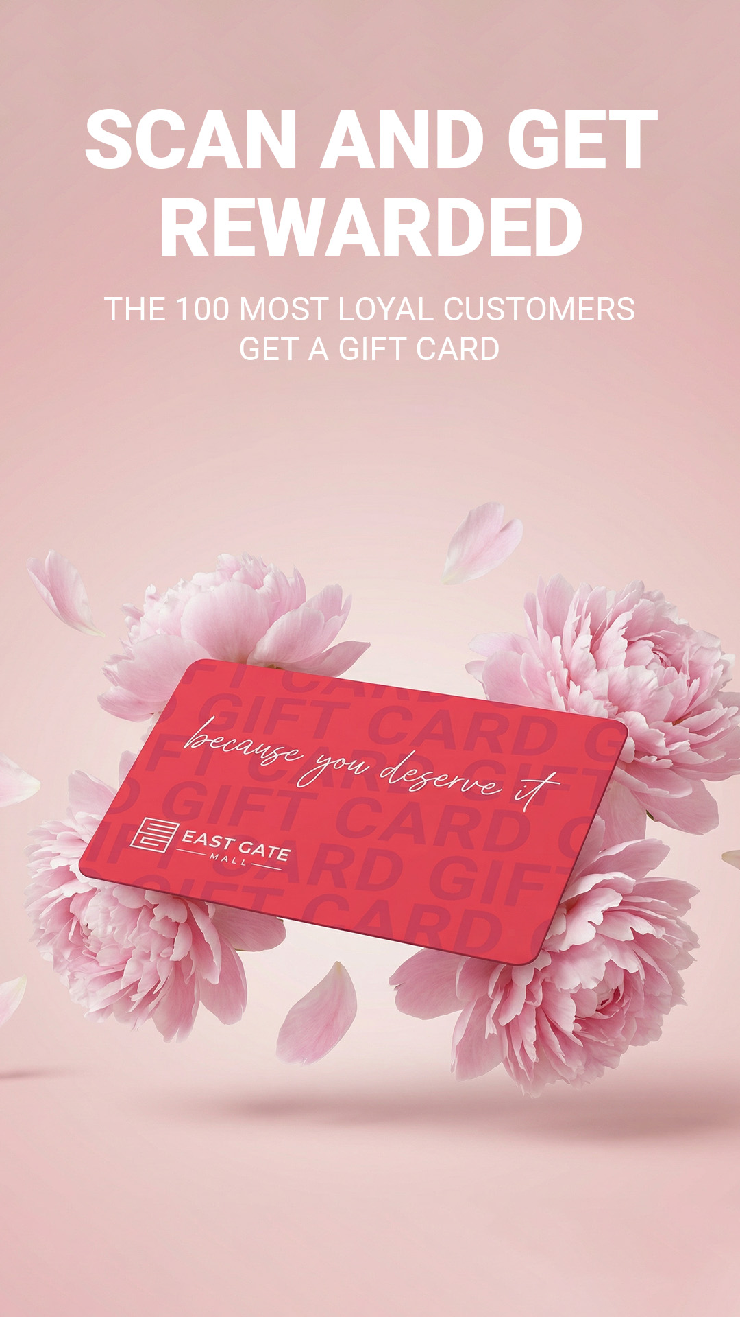 the 100 highest scanned receipts in the East Gate Mall mobile app will be rewarded with gift cards. 💳✨